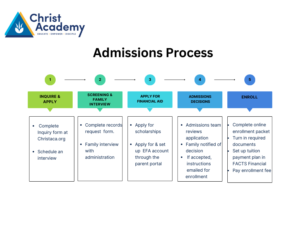 4. All students and parents must be willing to subscribe to the goals, philosophy, discipline, and academic standards of Christ Academy.